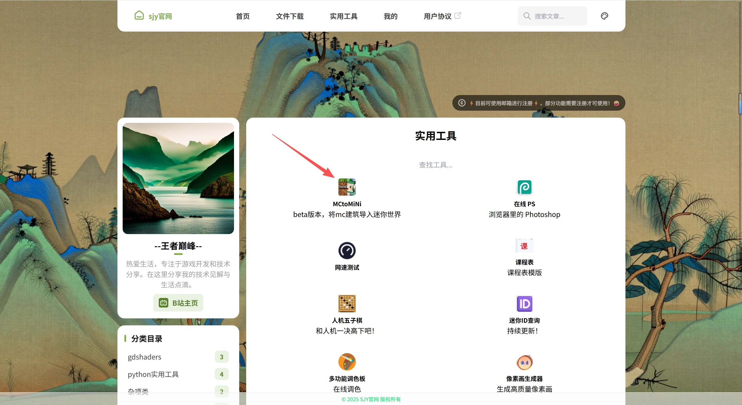 下面进入网站的实用工具界面,点击第一个工具(注意:此工具需要先注册成为网站用户才可使用)