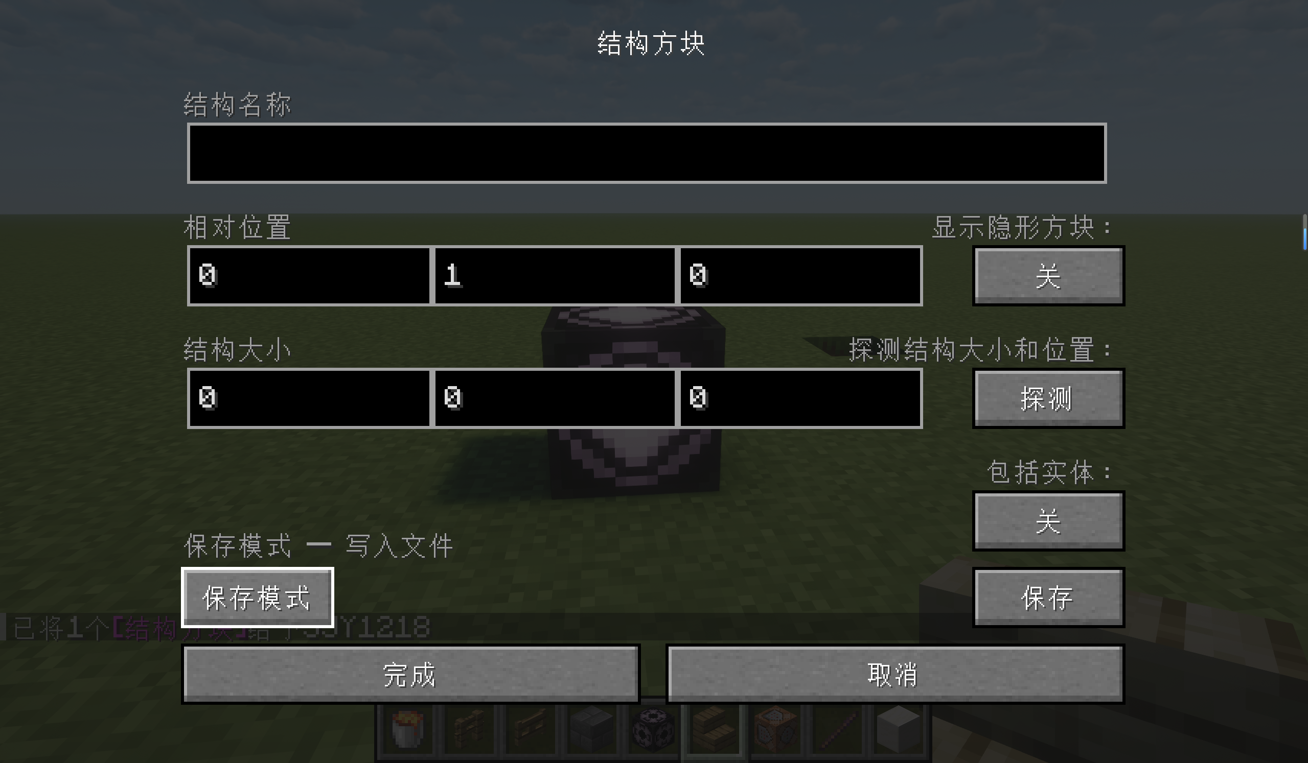 这里选择保存模式。输入结构大小和起始位置,然后探测,确保范围包括你的目标建筑。